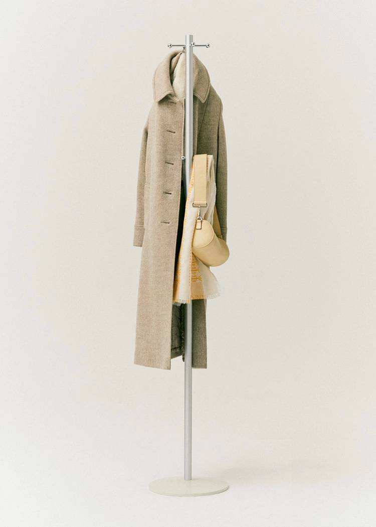 기능적이면서도 간결한 라인의 코트스탠드로 자주 입는 옷을 걸어두는 상단 행거와 길이 조절이 가능한 중간부 행거로 구성되었습니다. 데일리백이나 머플러 등을 자연스럽게 걸쳐두는것 만으로 스타일링이 되는 제품입니다.